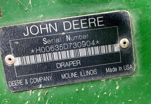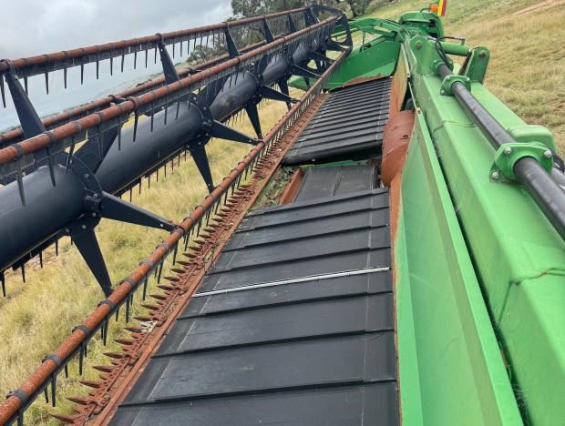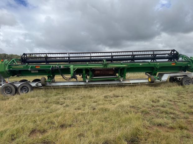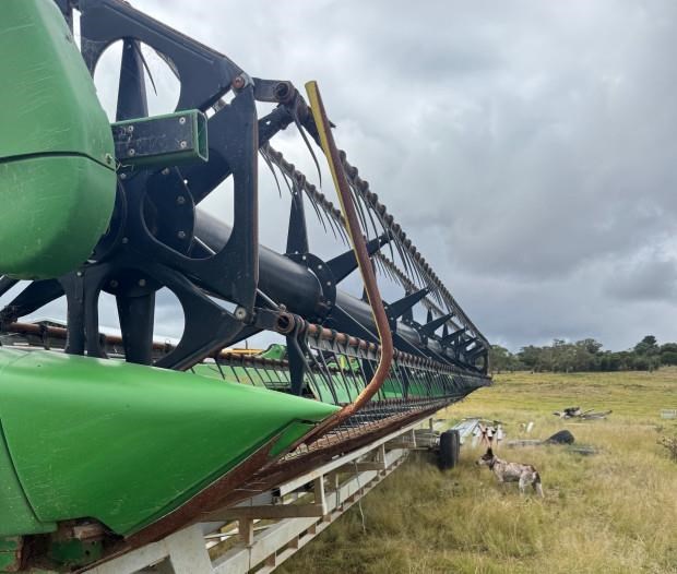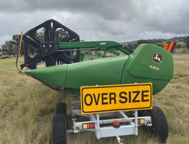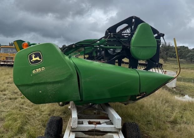John Deere 635D Combine Front, 35ft, draper, recent repairs - rollers and bearings, new gauge wheel cylinders, main feeder drum rebuilt, requires preseason inspection and repairs, comb trailer not included, fair condition, near Glen Innes NSW, includes GST