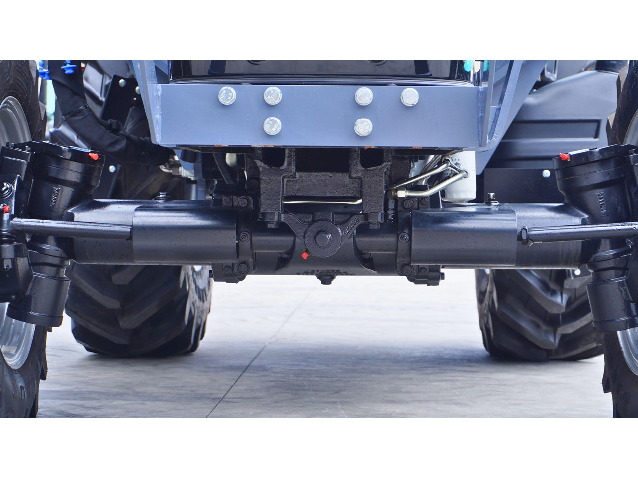 More front loader lifting capacity and tractor pulling capacity. It takes a certain amount of weight for a tractor to transfer one HP of energy from the engine to the ground. If you have too little weight, your purchased HP isn't performing optimally. We designed a balanced tractor with heavy front and rear weight to achieve effective grip in the field, and in return, our tractor has more front-end lifting capacity and tractor pulling capacity.
