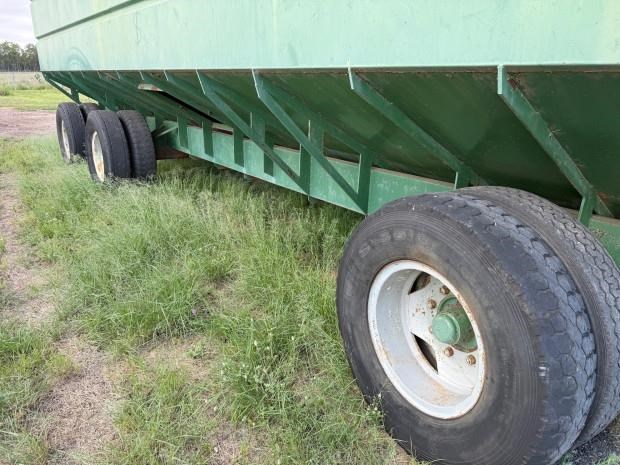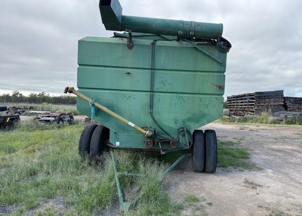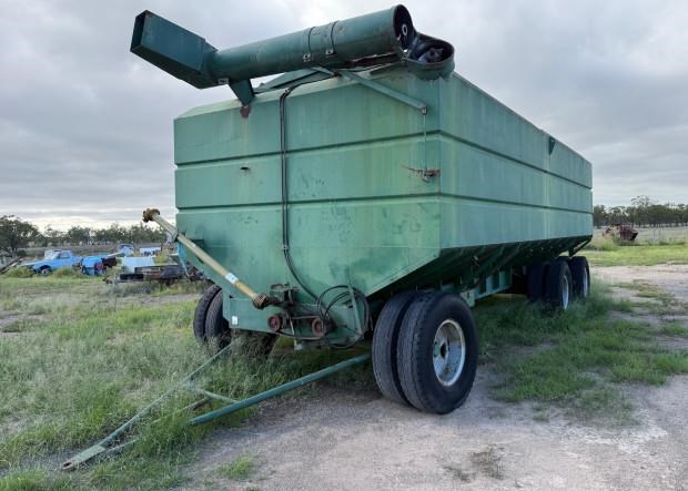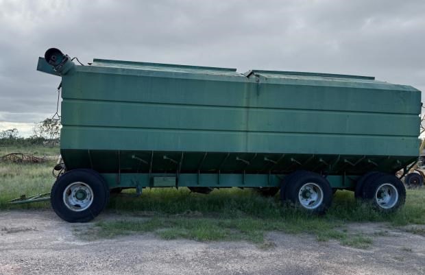 Vennings Mother Bin, 40 tonne, hyd fold unload auger, steel bin lids, personnel ground level access to bin, steering, 10.00-20 truck tyres, good condition, near Millmerran QLD, includes GST